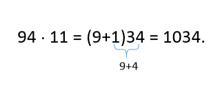 2, Сума цифр числа, яке множиться на 11, більше за 9. В цьому випадку треба між ними вставити кількість одиниць в сумі цифр даного числа, а першу цифру числа, яке множиться збільшити на 1: